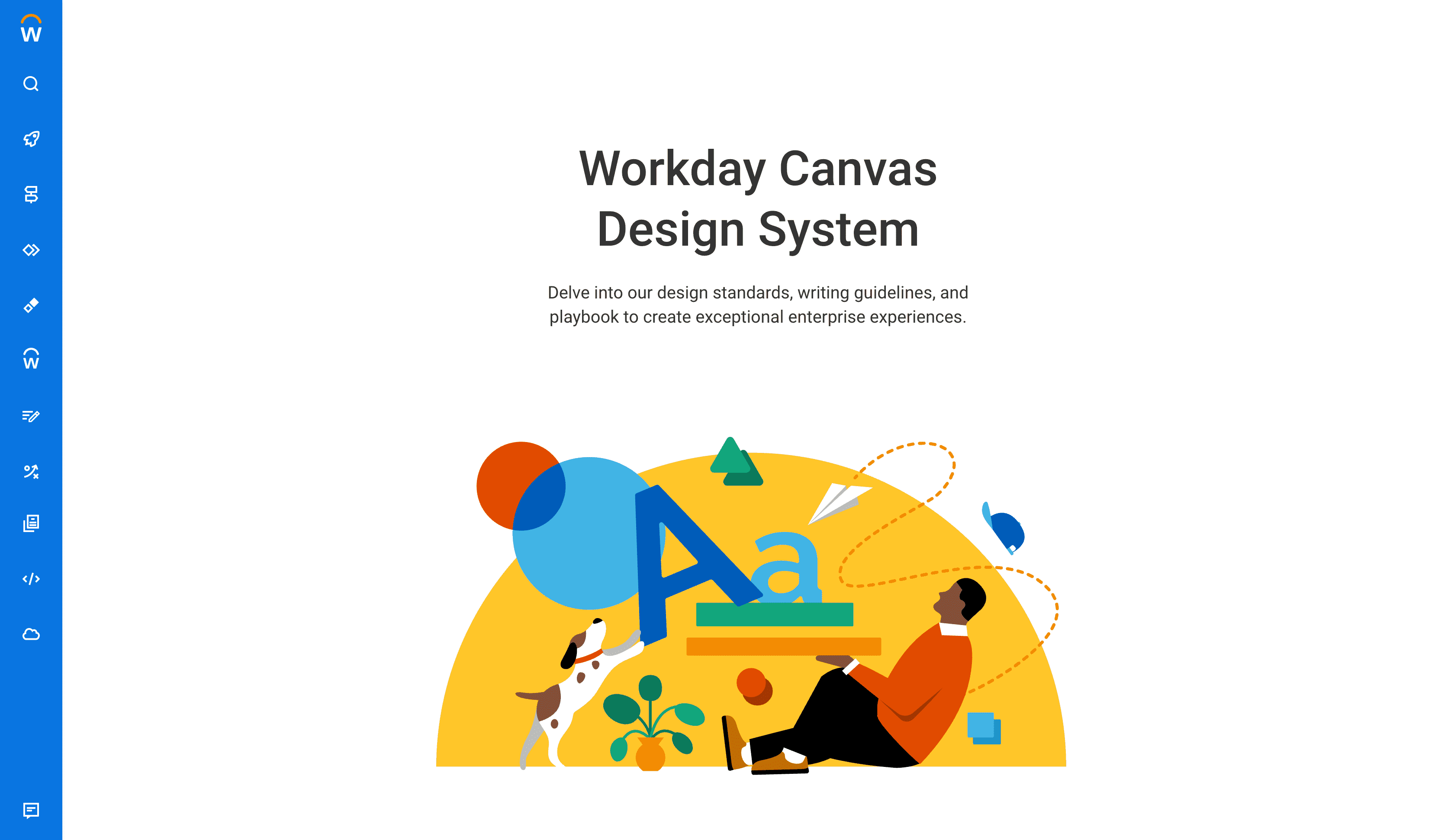 - The playful illustration on the homepage of our Workday design site is decorative. It does not provide any additional information to users so it does not have alt-text and is marked as decorative.