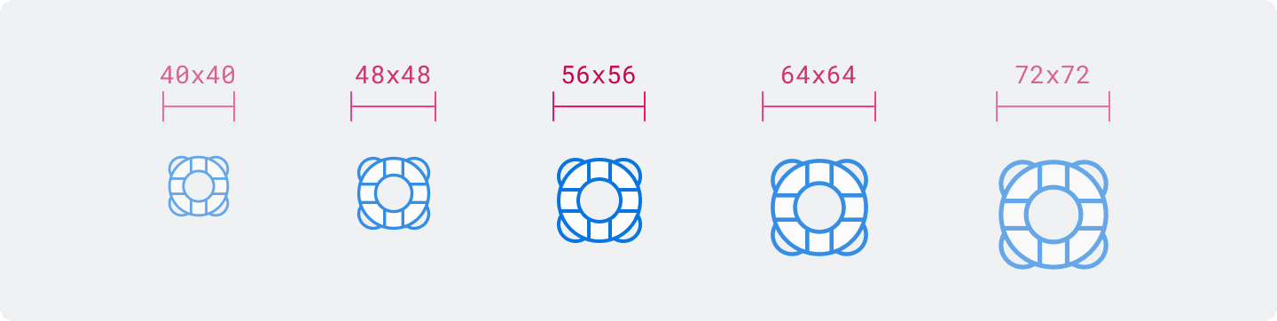 Accent icons are built on a base grid, using a grid will help you draw your icon to Workdays brand specific parameters, keeping things consistent. Canvas maintains a base grid of 56x56px for Accent icons.