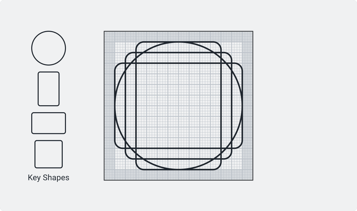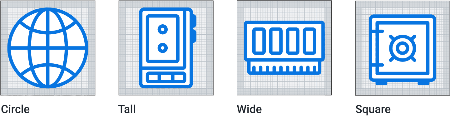Using a key shape provides a consistent size for basic shapes and proportions across the entire Accent icon suite. They help maintain a common visual style.