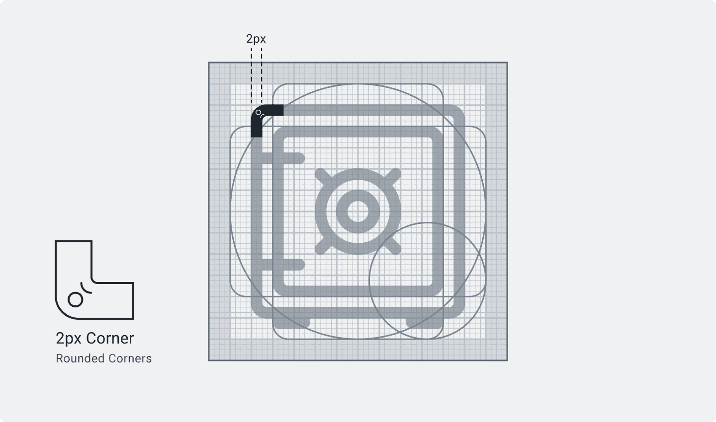 A corner radius of 2px should be applied to a shape, maintaining a consistent corner radius on all shapes to ensure visual consistency across the entire Accent icon suite.