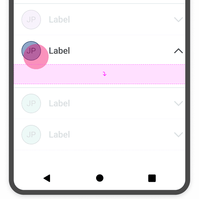The entire surface area of the header is interactive. Tapping on the header will expand or collapse the content area, revealing or hiding more details. Any elements within the header should not have an additional touch target; however, elements within the expandable content may be tappable.