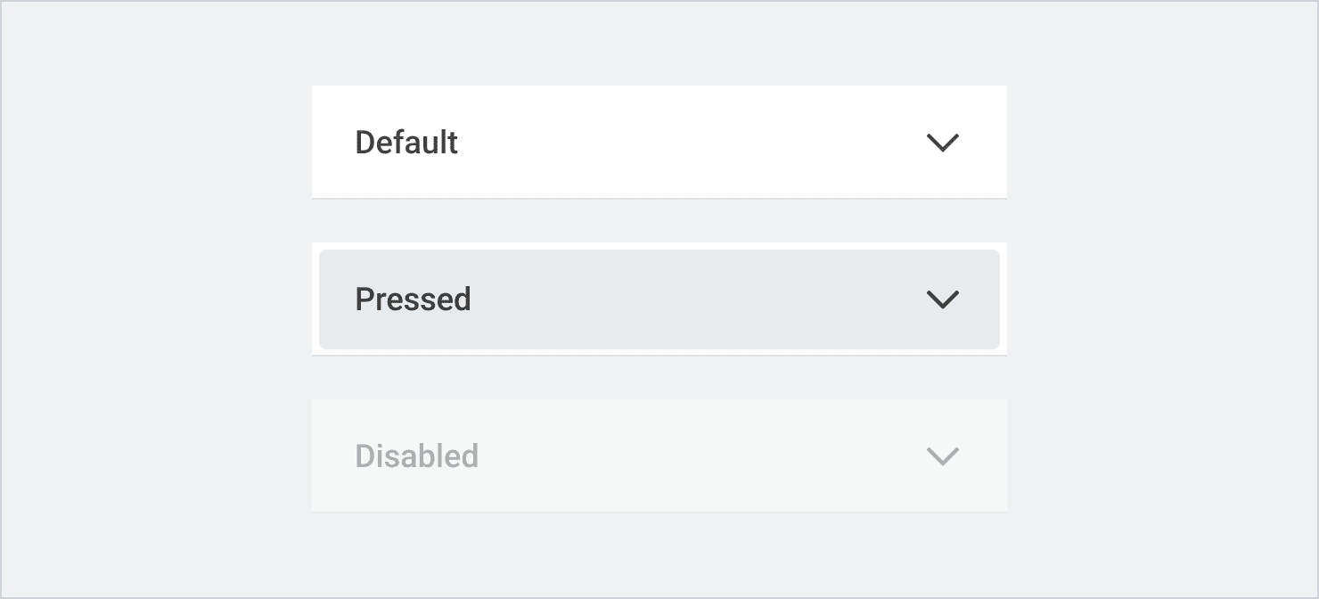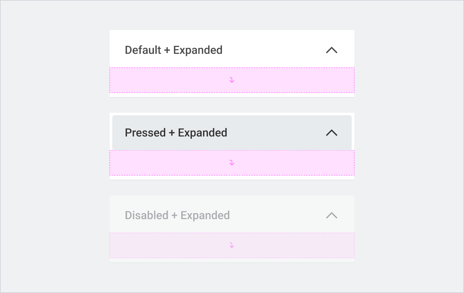 Expandable Containers have the default, pressed, and selected states. The default and pressed state are only applied to the header.