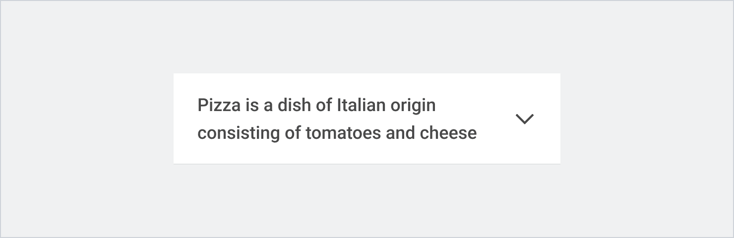 - Chevron: Icon indicating the opened or closed state of the container by pointing in the direction of expansion.