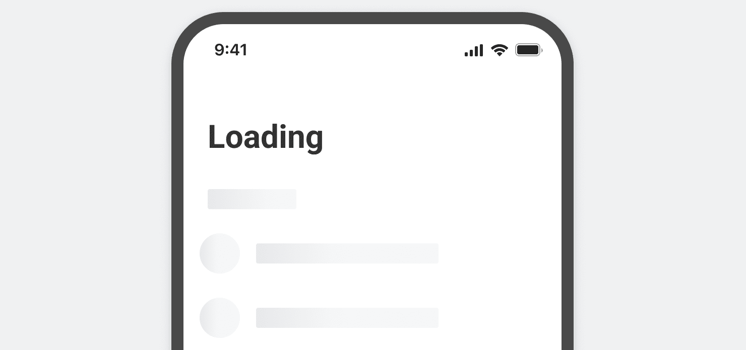 Skeletons are used as placeholders for List content if it takes more than 1 second to load. Showing the general shape of the List through Skeletons improves perceived performance by reducing the time it takes for meaningful content to populate the screen.