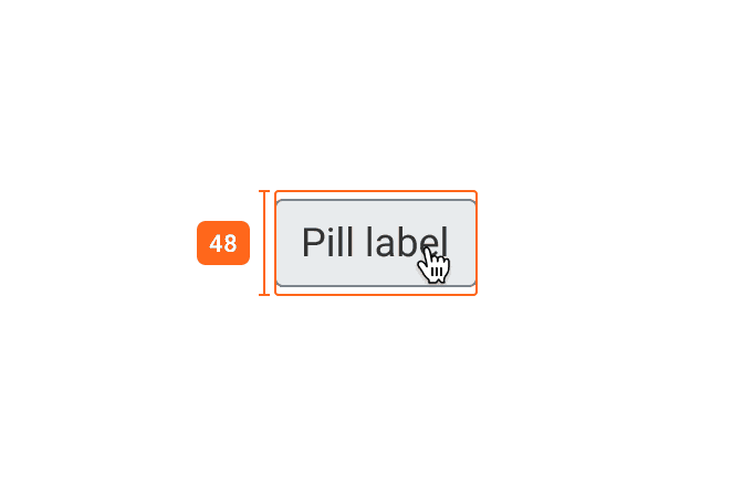 - Ensure a minimum tap target height of 48dp to ensure easy interaction. This means adding an additional 4dp of tappable top and bottom padding to the Pill.
