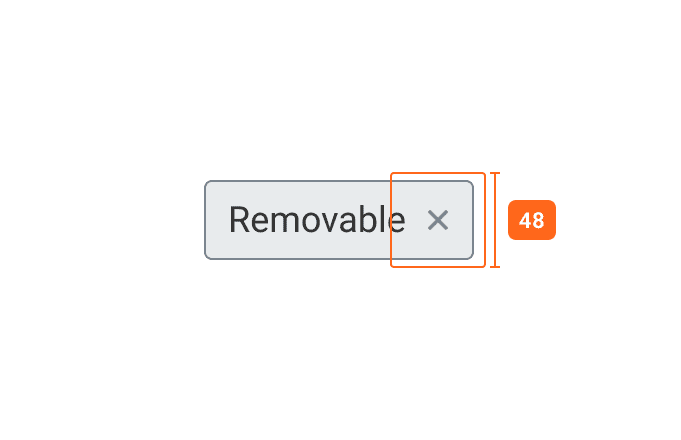 - Ensure a minimum tap target area of 48dp for the X icon in removable Pills.