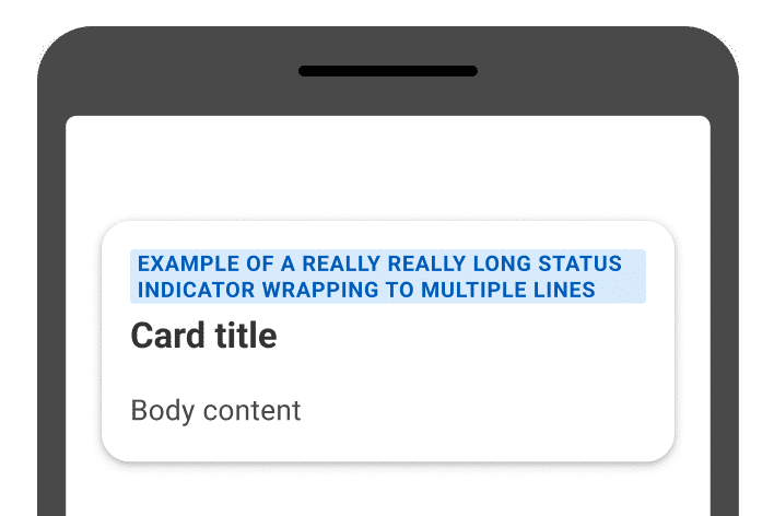 - Status Indicator text should not wrap and instead stretch to fill the container or screen margins. When the max-width is reached, text is truncated. Try to avoid truncation from happening in the first place by keeping text short, direct, and preferably a single word.
