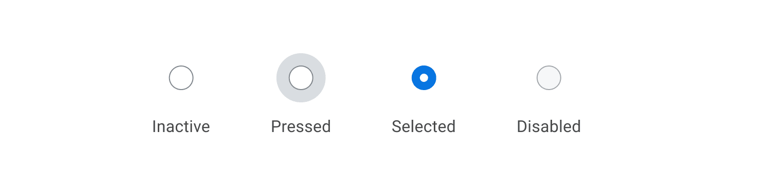 - Ensure a minimum tap target of 48dp to ensure that they are easy to interact with. For Radio Buttons, an additional 12dp of tappable horizontal and vertical padding are added to meet the minimum touch target.
