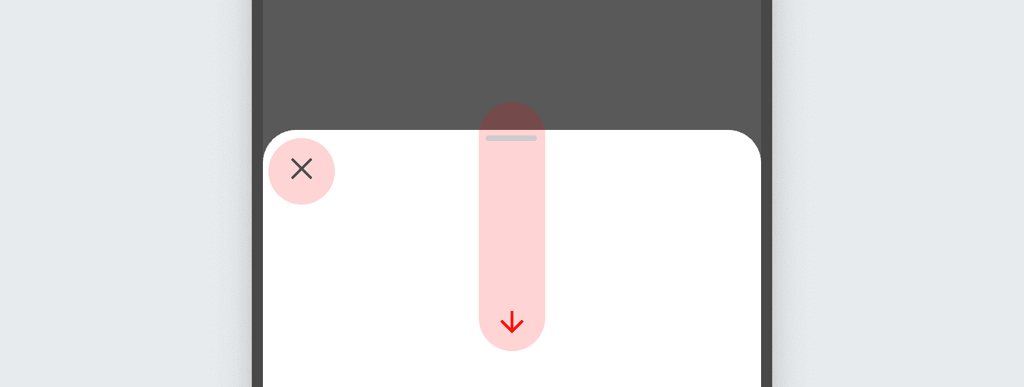 - While bottom sheets support gesture-based dismissal, add a visual affordance for dismissal based on the content. consider providing alternative ways to dismiss the sheet using visual affordances.