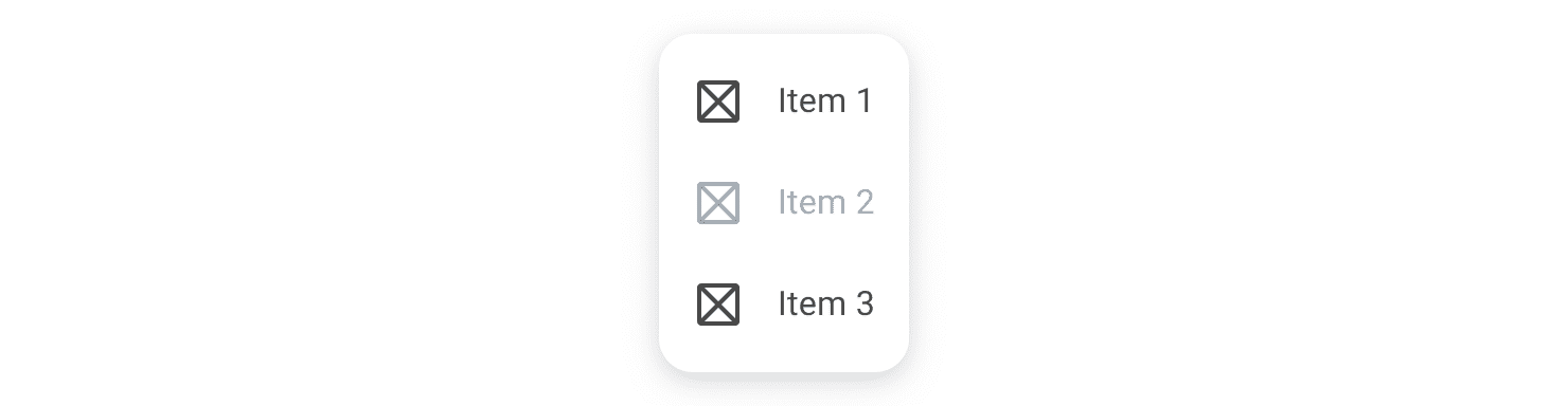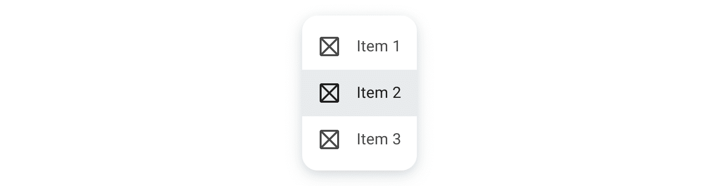 - Container: Rectangular container that houses the icon and text for menu list items.