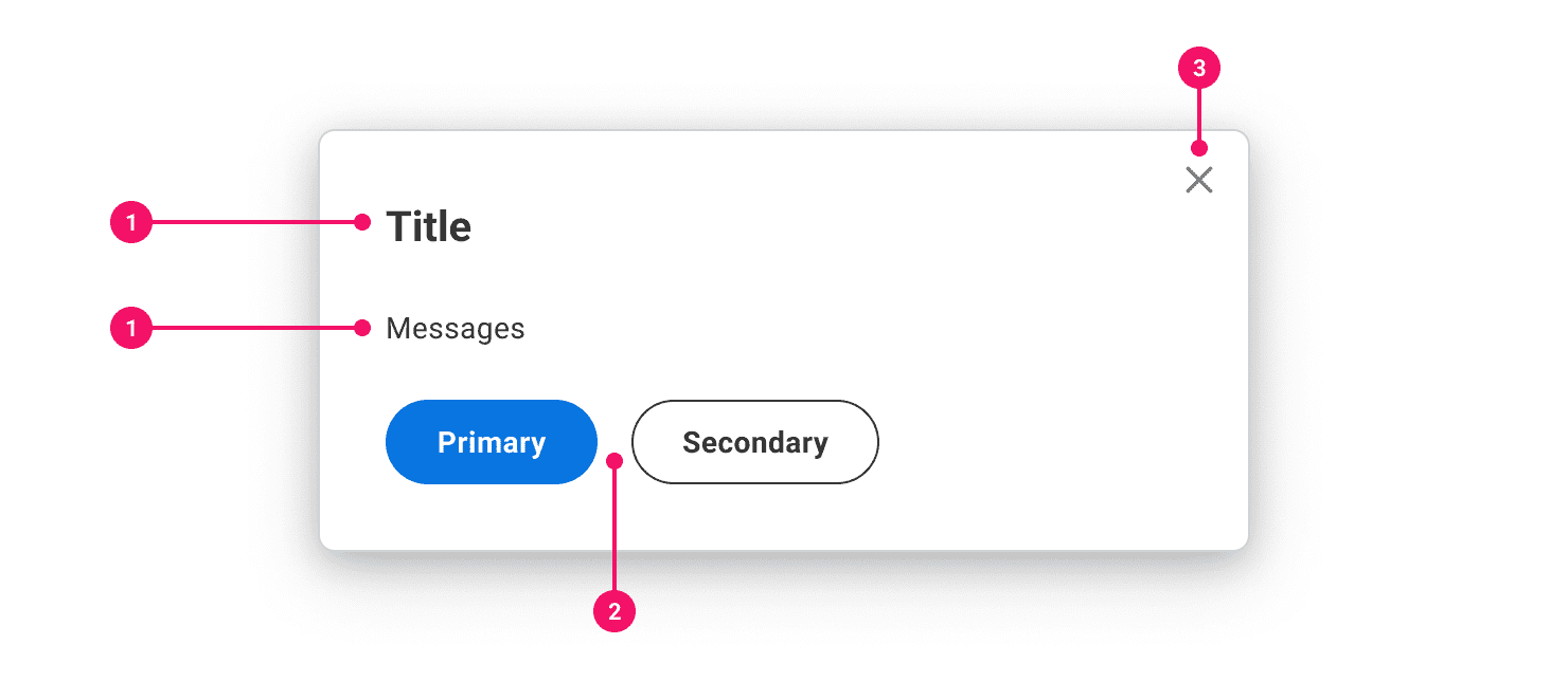 - See the Dialogs, Popups, and Modals page in the UI Text section of the Content Style Guide for modal language guidelines.