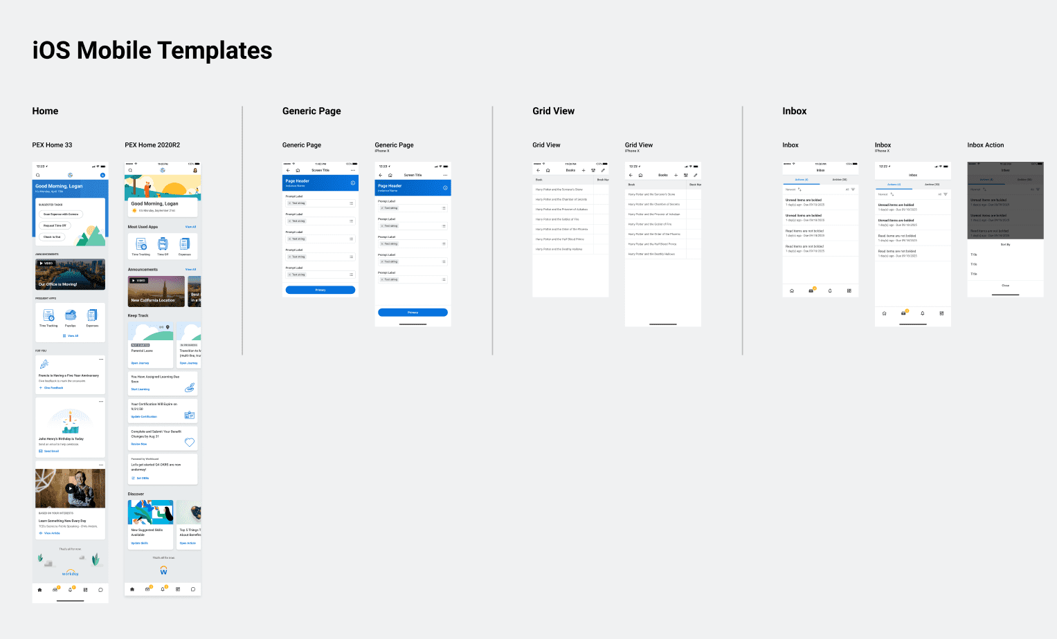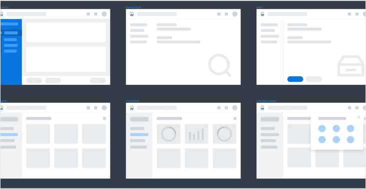 Simplified illustrative shapes respresenting key screen types within Workday. Useful for adding to Flows as an alternative to higher fidelity screens.