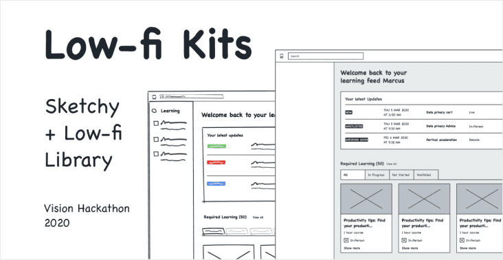 The Low-Fi Kits bridge the gap between sketching and hi-fidelity designs, and give you time to explore and iterate before getting too engrossed in a polished ‘finished looking’ design. To access the Low-Fi kits, simply join the 'UX Org' team on Figma and activate 'Low-fi Kits' from your assets panel in Figma to start producing some low-fi designs straight away. Check out our video entry for more information. You can also go to the library file and copy and paste the assets manually to a new doc if you'd like to use everything.