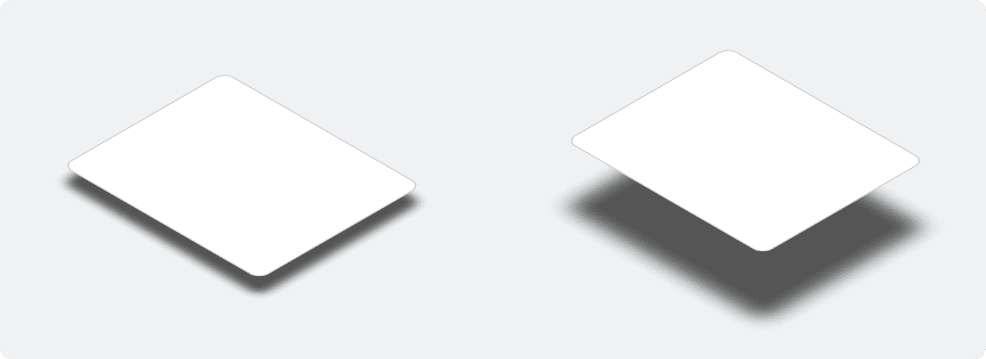Depth helps the user understand the spatial relationship between objects by utilizing differences in shadows. The closer an object is to another surface the smaller and harder the shadow becomes. As that object moves away from the surface the shadow will grow and become softer. We can use this to our advantage by placing more critical or important objects closer to the user.
