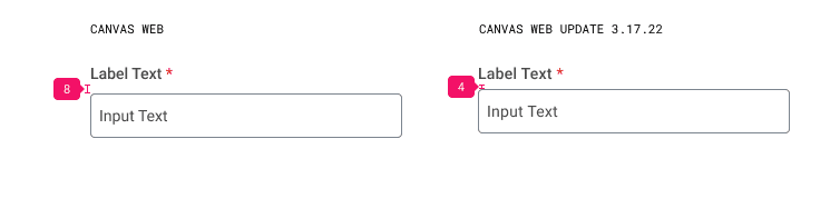 The spacing between the text labels and input fields for the Input components in Canvas Web library have been updated to use 4px instead of 8px to align with developer components in Canvas Kit. The following components were impacted by this fix: